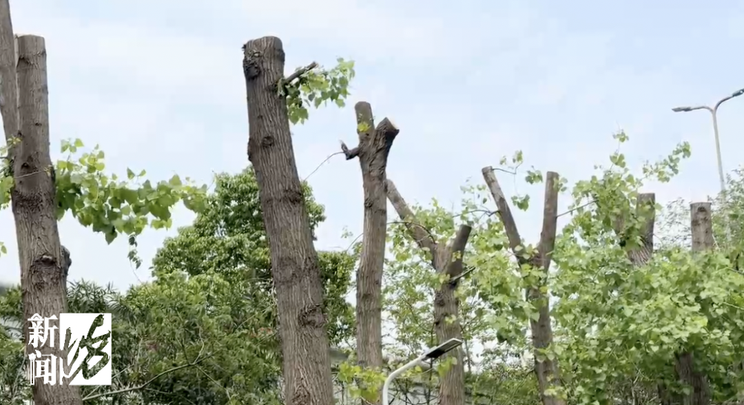 朱先生表示,此次修绿是通过业主大会表决的,自己也是支持的,但没有想到是直接"剃光头",8层楼高的大树直接被砍至不足三层楼高。