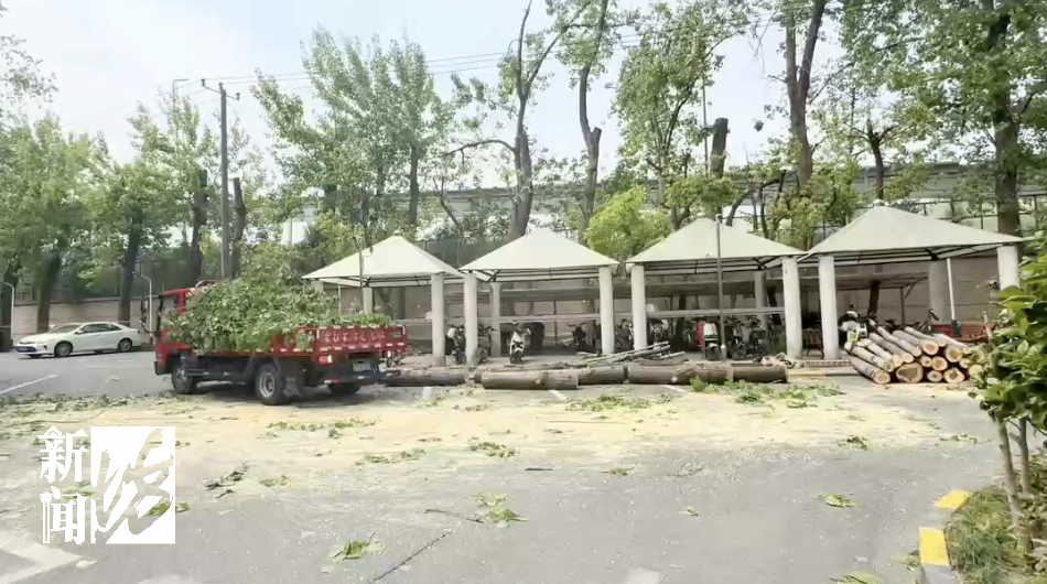 对此,新梅广场业委会主任骆先生介绍,这排意杨树紧靠一组万伏高压电线,此次修剪也是为了排除隐患。“如果树枝折断就会折断高压线引起火灾、人身安全事故。去年台风,树枝就折断了,幸好下面没人,有人的话,这个事情就搞大了。”